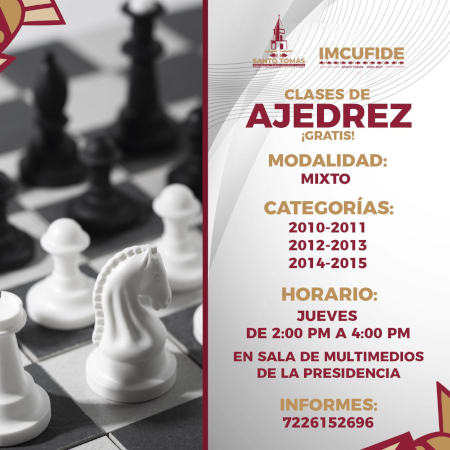 a Participar en las Clases de Ajedrez, "Ven y conviértete en un Gran Estratega."
