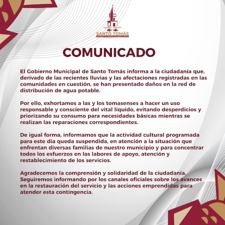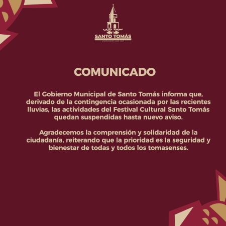 Con Motivo de las Afectaciones en las Comunidades y Carretera Principal, se Suspende la Semana Cultural hasta Nuevo Aviso