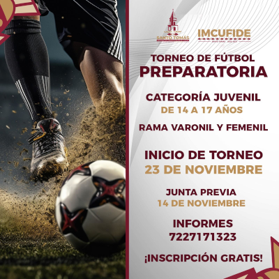 a todos los jóvenes de 14 a 17 años, a participar en Torneo de Futbol de Preparatoria